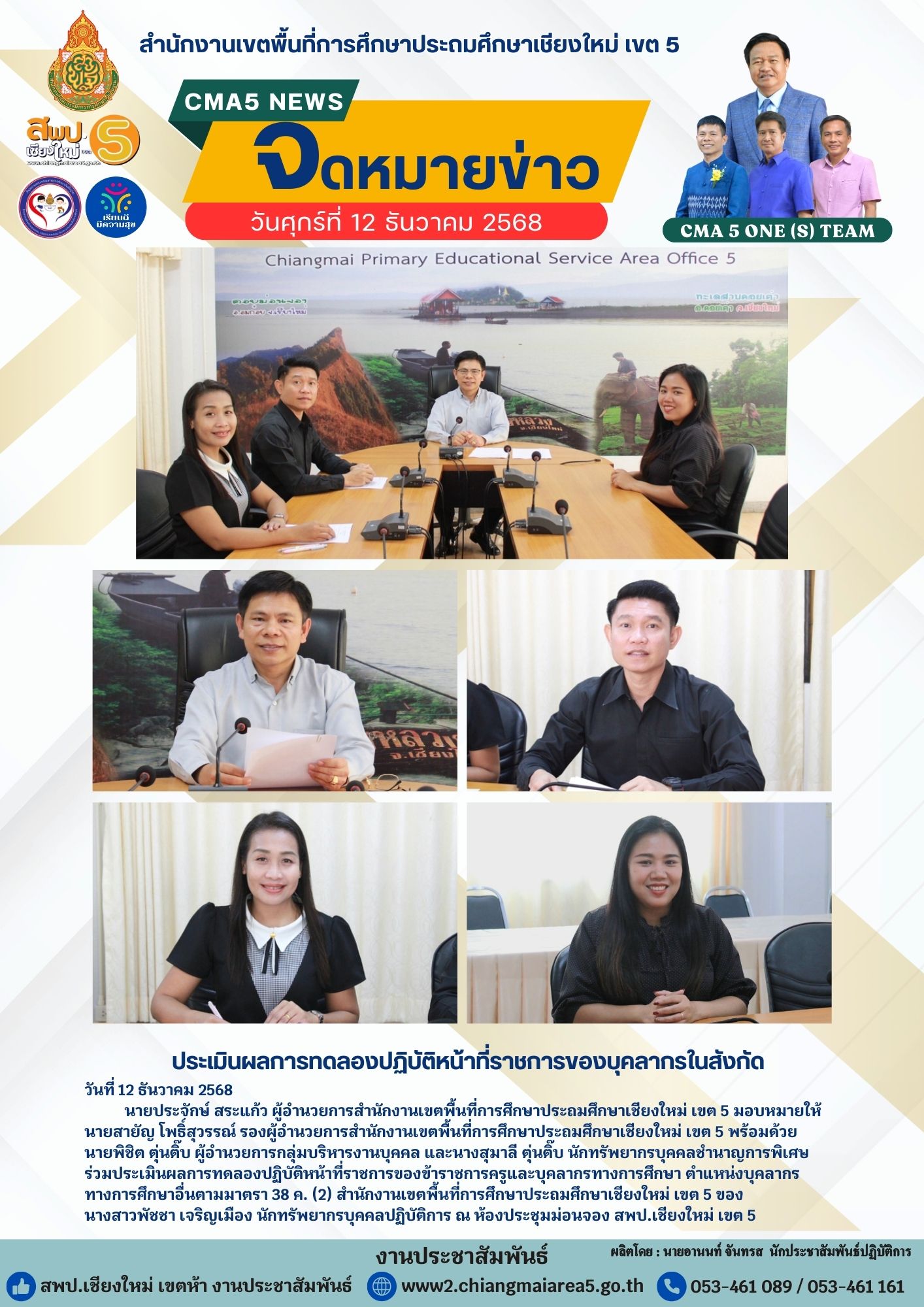 วันที่ 12 ธันวาคม 2568 นายประจักษ์ สระแก้ว ผู้อำนวยการสำนักงานเขตพื้นที่การศึกษาประถมศึกษาเชียงใหม่ เขต 5 มอบหมายให้ นาย...