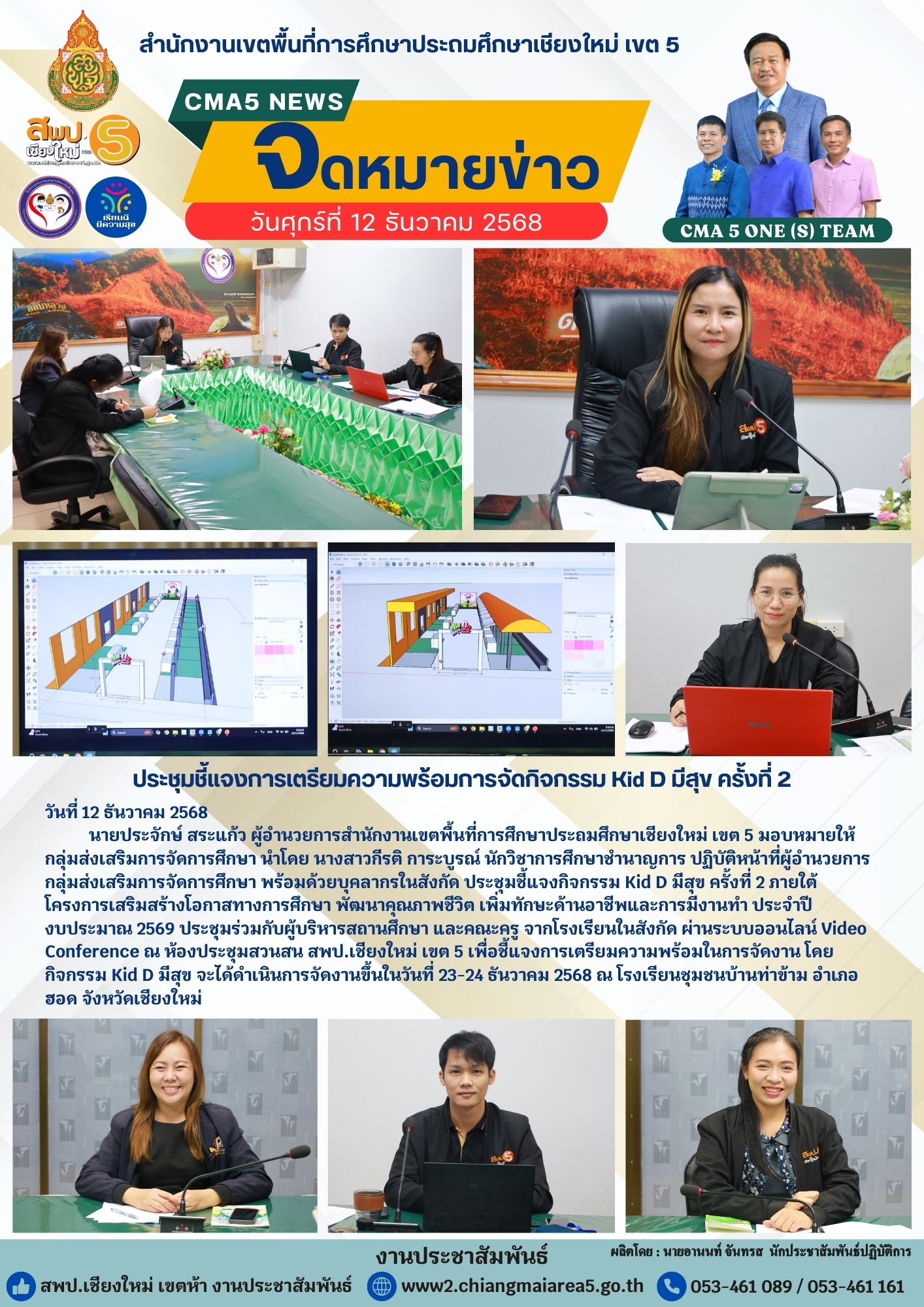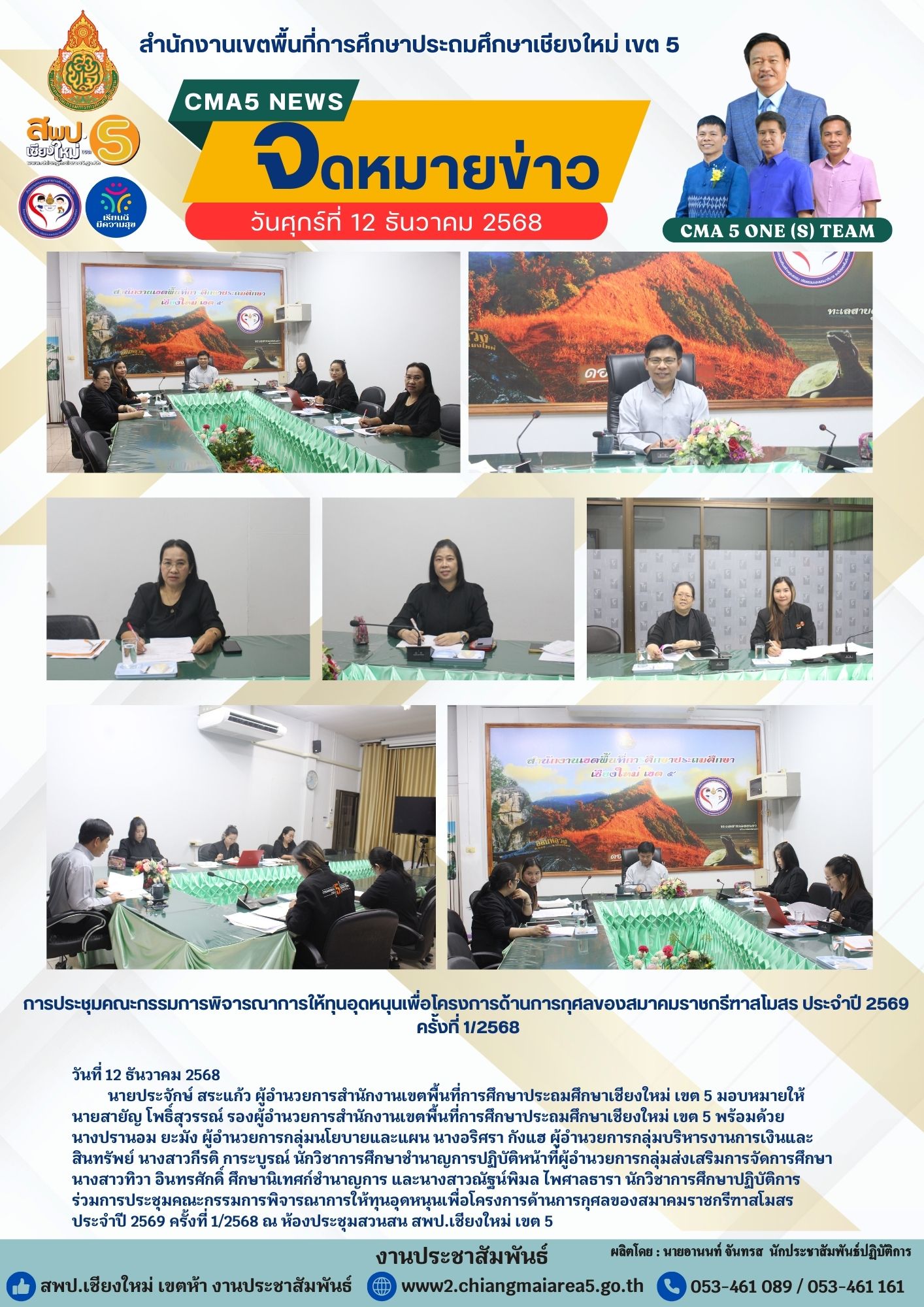 วันที่ 12 ธันวาคม 2568 นายประจักษ์ สระแก้ว ผู้อำนวยการสำนักงานเขตพื้นที่การศึกษาประถมศึกษาเชียงใหม่ เขต 5 มอบหมายให้ กลุ...