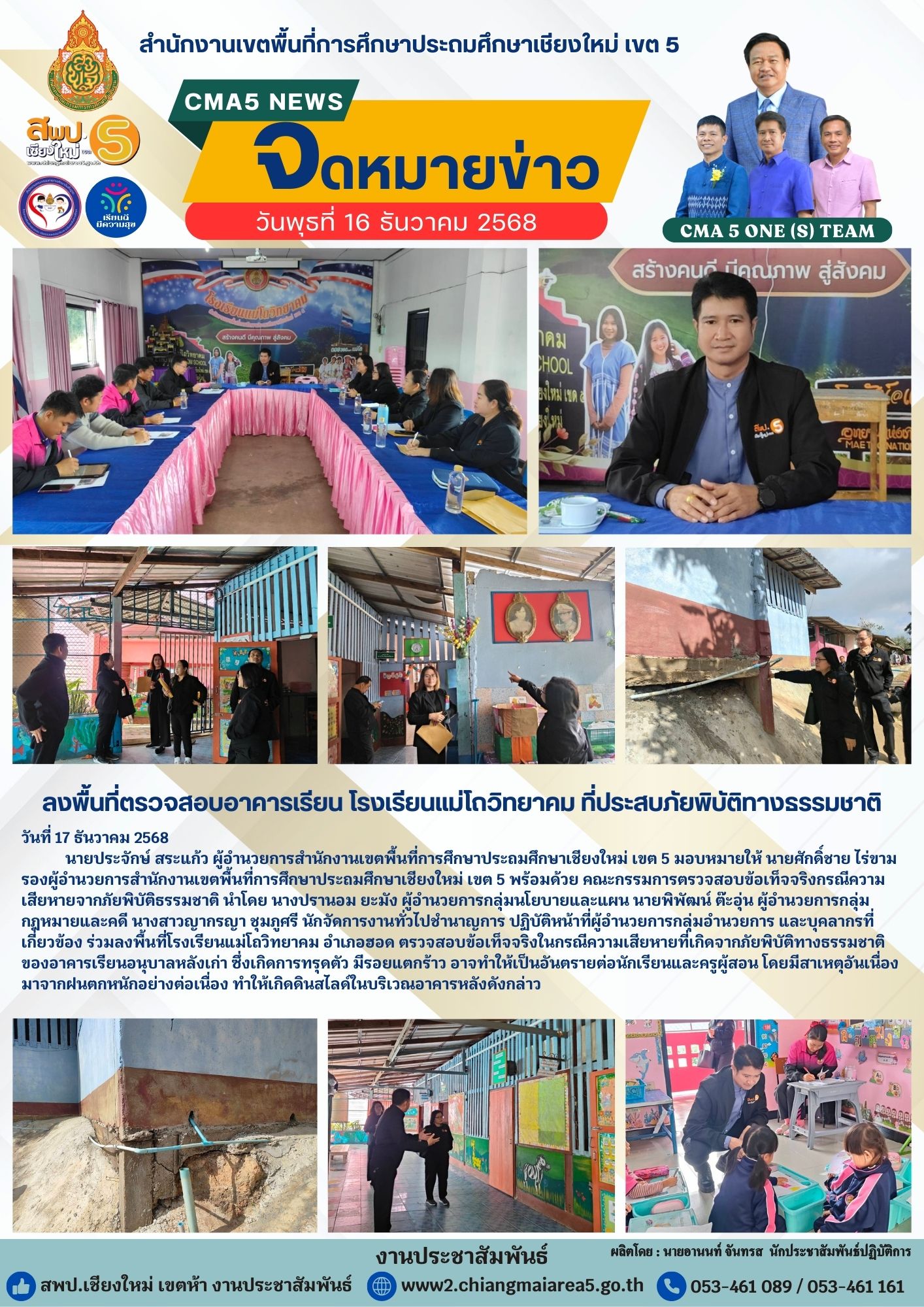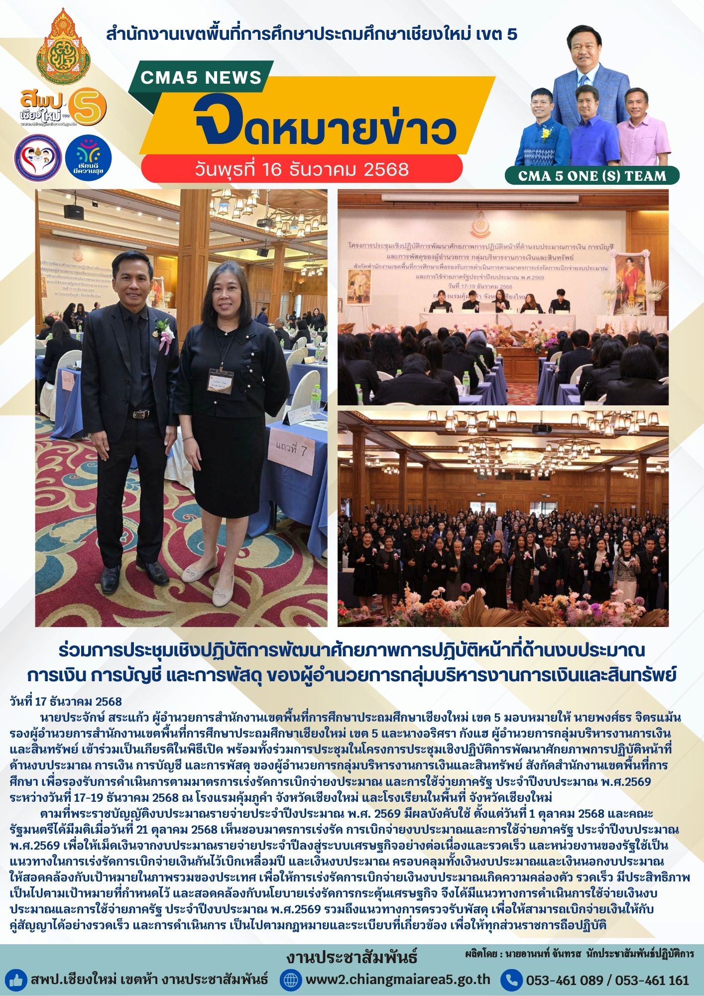 วันที่ 17 ธันวาคม 2568 นายประจักษ์ สระแก้ว ผู้อำนวยการสำนักงานเขตพื้นที่การศึกษาประถมศึกษาเชียงใหม่ เขต 5 มอบหมายให้ นาย...