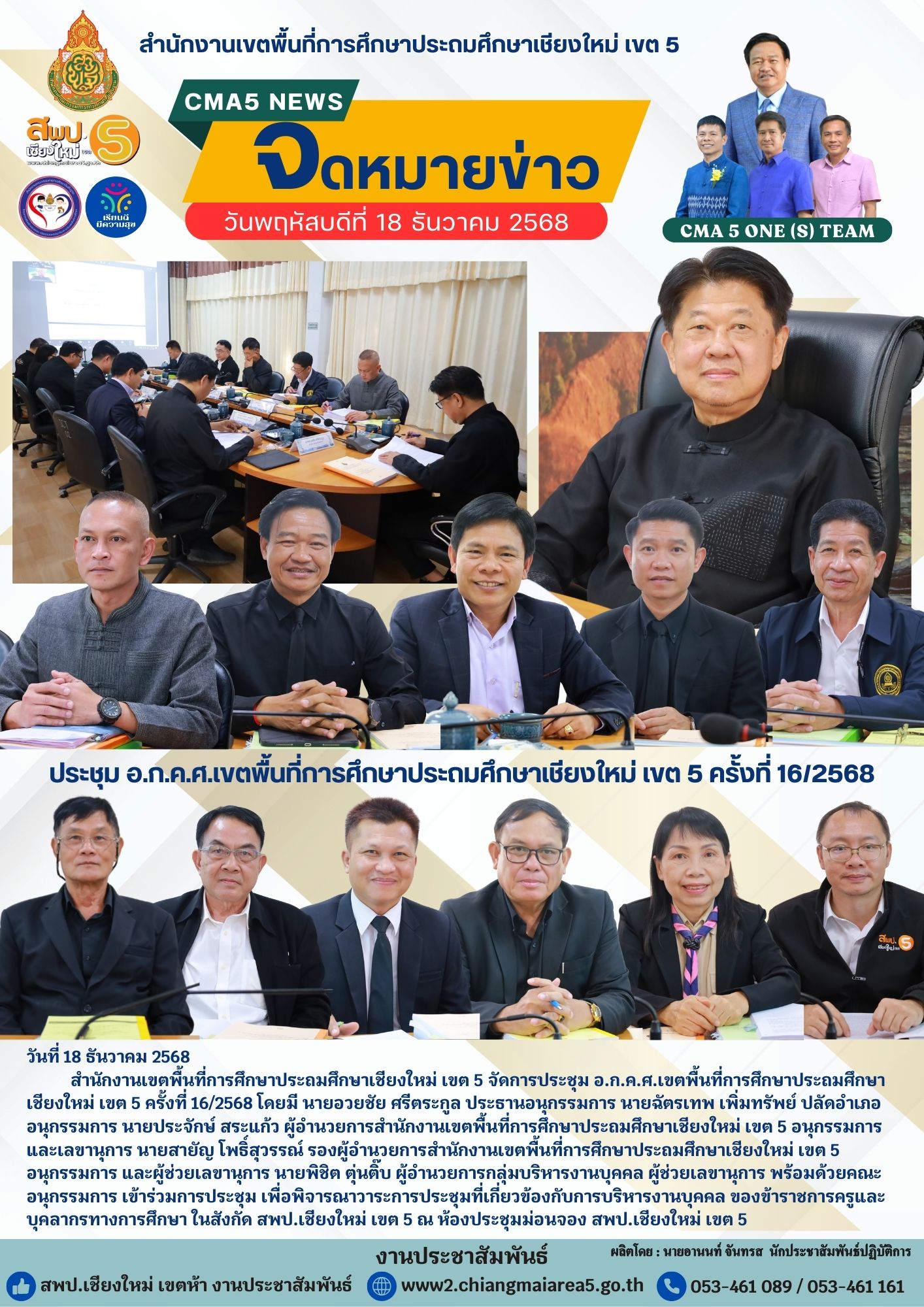 วันที่ 18 ธันวาคม 2568 สำนักงานเขตพื้นที่การศึกษาประถมศึกษาเชียงใหม่ เขต 5 จัดการประชุม อ.ก.ค.ศ.เขตพื้นที่การศึกษาประถมศ...