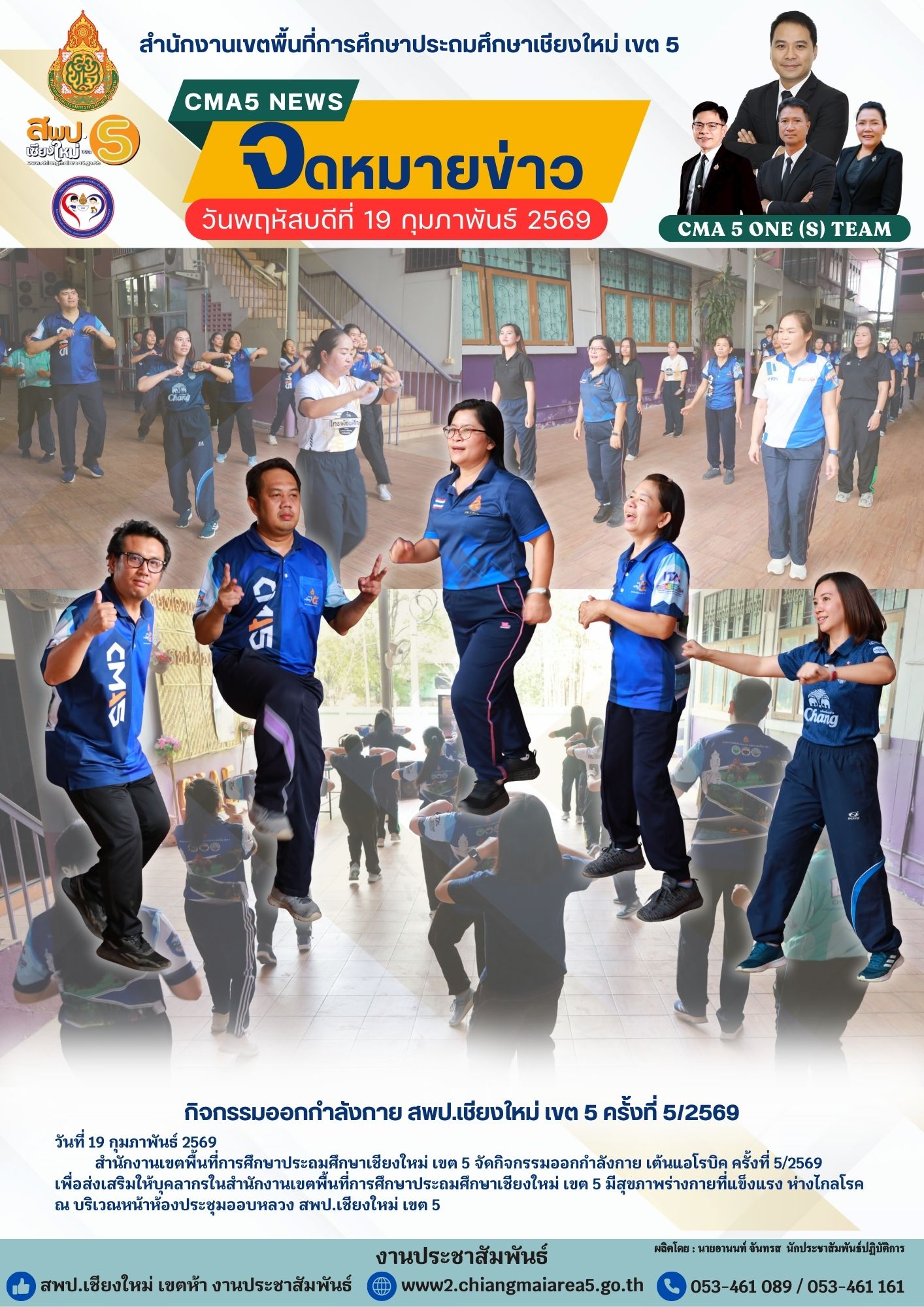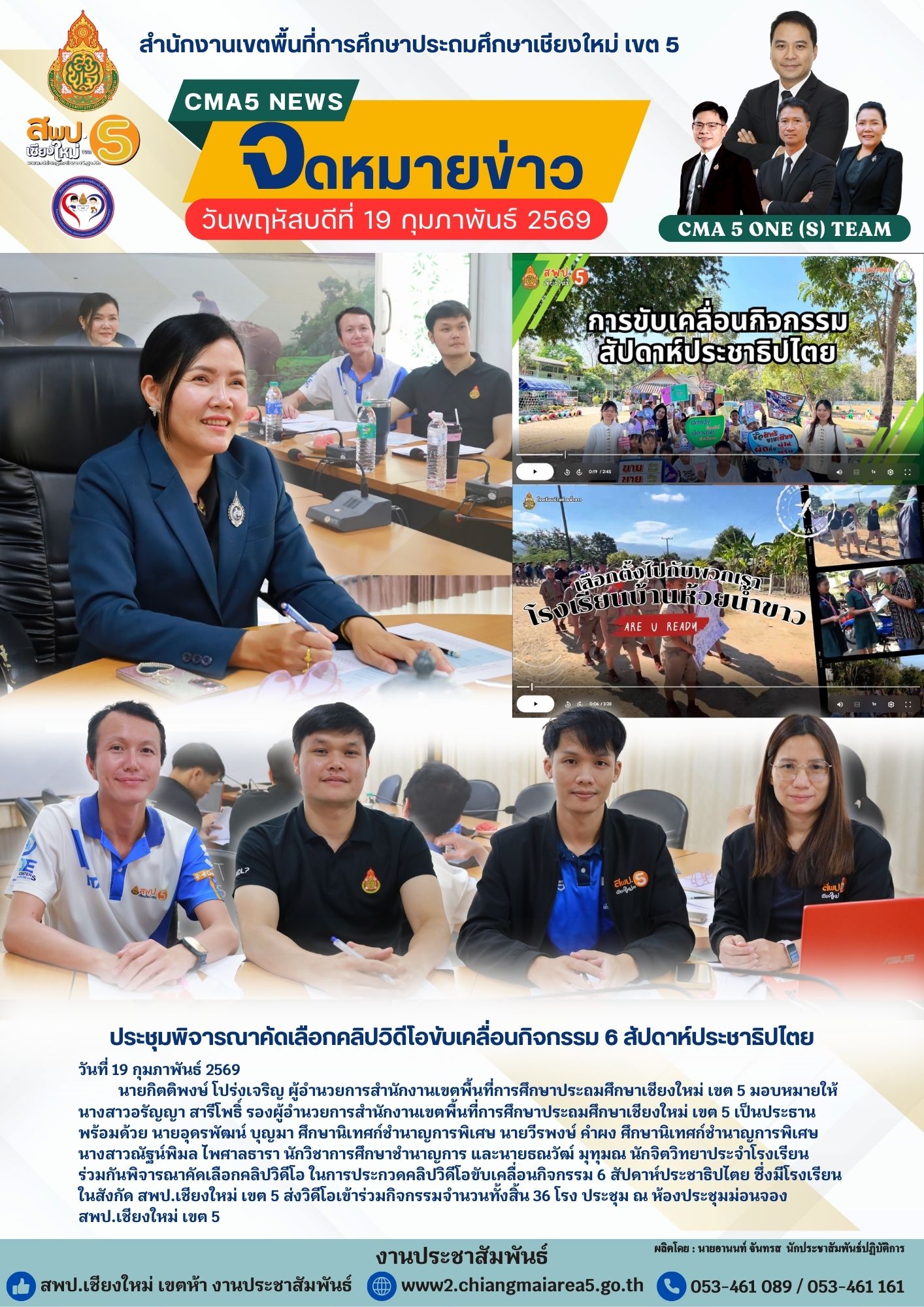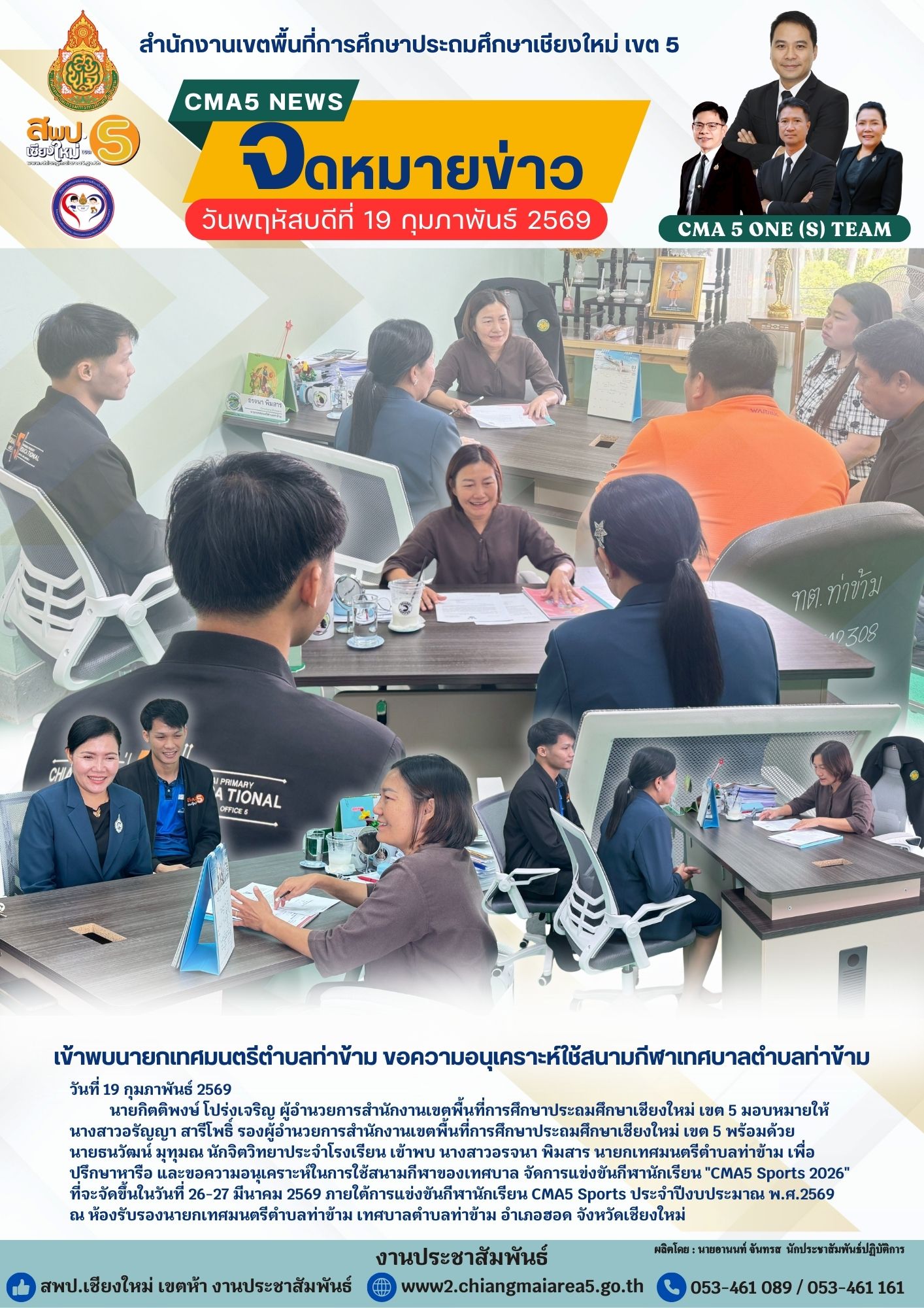 วันที่ 19 กุมภาพันธ์ 2569 นายกิตติพงษ์ โปร่งเจริญ ผู้อำนวยการสำนักงานเขตพื้นที่การศึกษาประถมศึกษาเชียงใหม่ เขต 5 มอบหมาย...