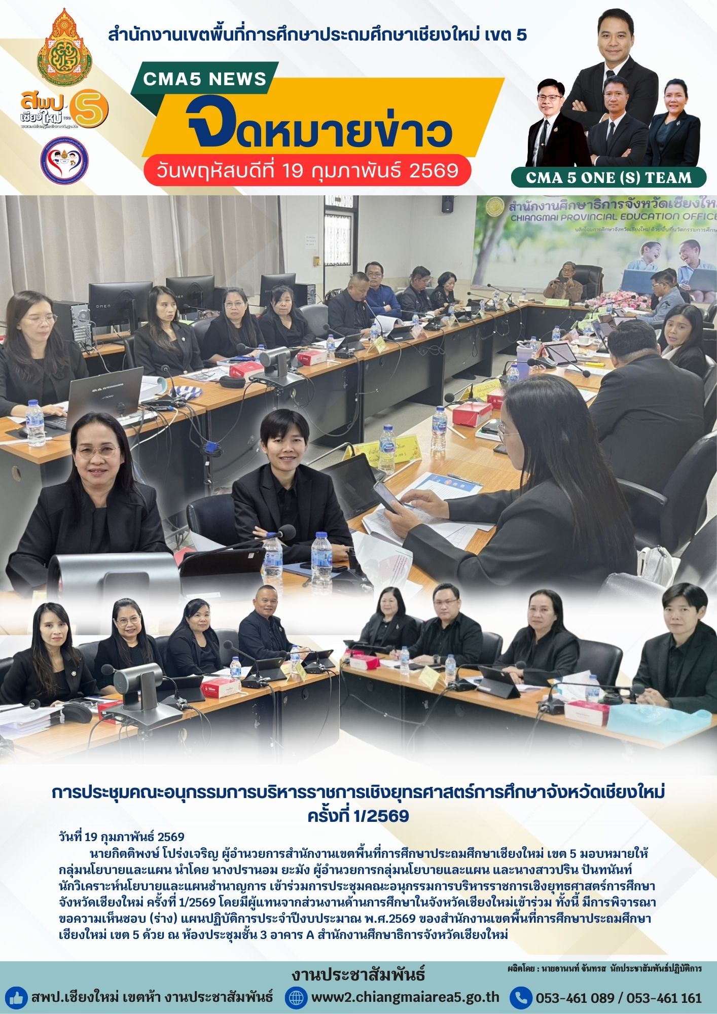 วันที่ 7 มีนาคม 2569 นายกิตติพงษ์ โปร่งเจริญ ผู้อำนวยการสำนักงานเขตพื้นที่การศึกษาประถมศึกษาเชียงใหม่ เขต 5 เป็นประธาน พ...