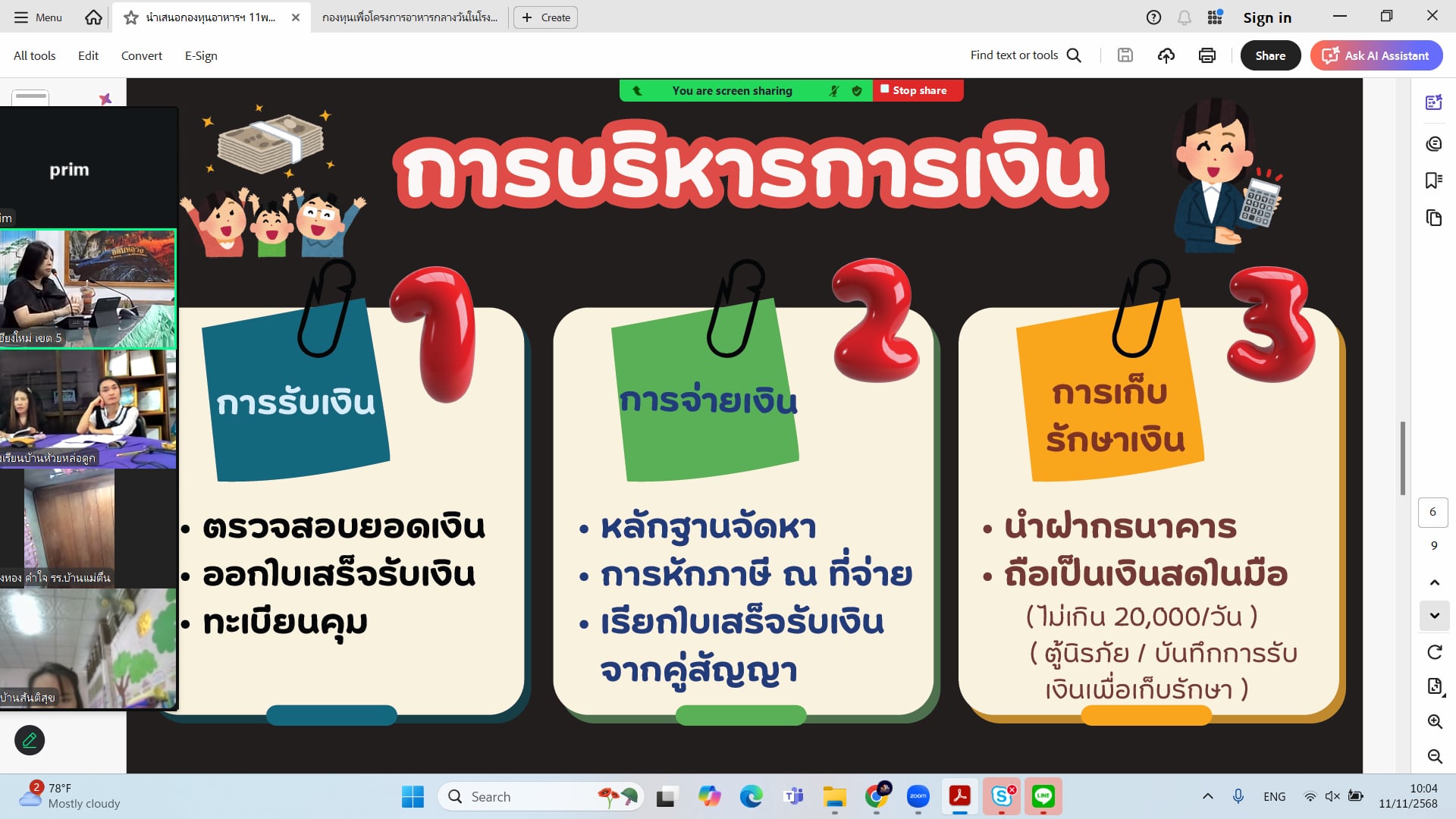 วันที่ 11 พฤศจิกายน 2568 นายประจักษ์ สระแก้ว ผู้อำนวยสำนักงานเขตพื้นที่การศึกษาประถมศึกษาเชียงใหม่ เขต 5 มอบหมายให้ นางสาวกีรติ การะบูรณ์ นักวิชาการศึกษาชำนาญการ ปฏิบัติหน้าที่ผู้อำนวยการกลุ่มส่งเสริมการจัดการศึกษา พร้อมด้วย ผู้บริหารสถานศึกษาและคณะครูโรงเรียนในสังกัด และนางสาวณัฐน์พิมล ไพศาลธารา นักวิชการศึกษาปฏิบัติการ ผู้รับผิดชอบโครงการฯ ร่วมประชุมชี้แจงการดำเนินงานกองทุนเพื่อโครงการอาหารกลางวันในโรงเรียนประถมศึกษา ผ่านระบบออนไลน์ (Zoom Meeting) โดยมี นางอริศรา กังแฮ ผู้อำนวยการกลุ่มบริหารงานการเงินและสินทรัพย์ ได้ชี้แจงการใช้จ่ายเงินที่ได้รับการจัดสรร ณ ห้องประชุมสวนสน สพป.เชียงใหม่ เขต 5