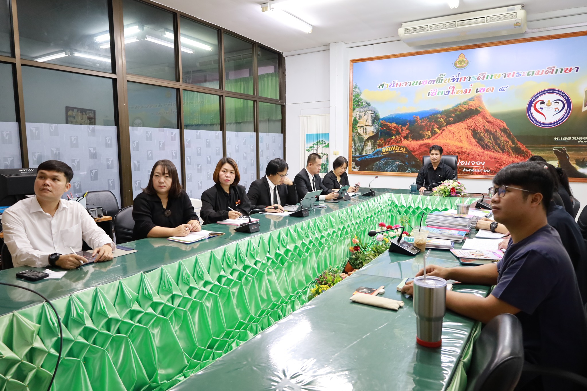 วันที่ 14 พฤศจิกายน 2568 นายประจักษ์ สระแก้ว ผู้อำนวยการสำนักงานเขตพื้นที่การศึกษาประถมศึกษาเชียงใหม่ เขต 5 มอบหมายให้ นายศักดิ์ชาย ไร่ขาม รองผู้อำนวยการสำนักงานเขตพื้นที่การศึกษาประถมศึกษาเชียงใหม่ เขต 5 พร้อมด้วย ศึกษานิเทศก์ ในสังกัดกลุ่มนิเทศติดตาม และประเมินผลกาจัดการศึกษา นำโดย ดร.วชิราพร สุวรรณศรวล ผู้อำนวยการกลุ่มนิเทศติดตาม และประเมินผลการจัดการศึกษา ร่วมการประชุมพัฒนาวิชาชีพศึกษานิเทศก์ เพื่อพัฒนาการดำเนินงานตามมาตรฐานวิชาชีพ ผ่านระบบออนไลน์ (Zoom Meeting) โดยมี ดร.วิษณุ ทรัพย์สมบัติ รองเลขาธิการคณะกรรมการการศึกษาขั้นพื้นฐาน กล่าวให้โอวาท และเปิดการประชุมออนไลน์ ผ่านระบบออนไลน์ (Zoom Meeting) ณ ห้องประชุมสวนสน สพป.เชียงใหม่ เขต 5