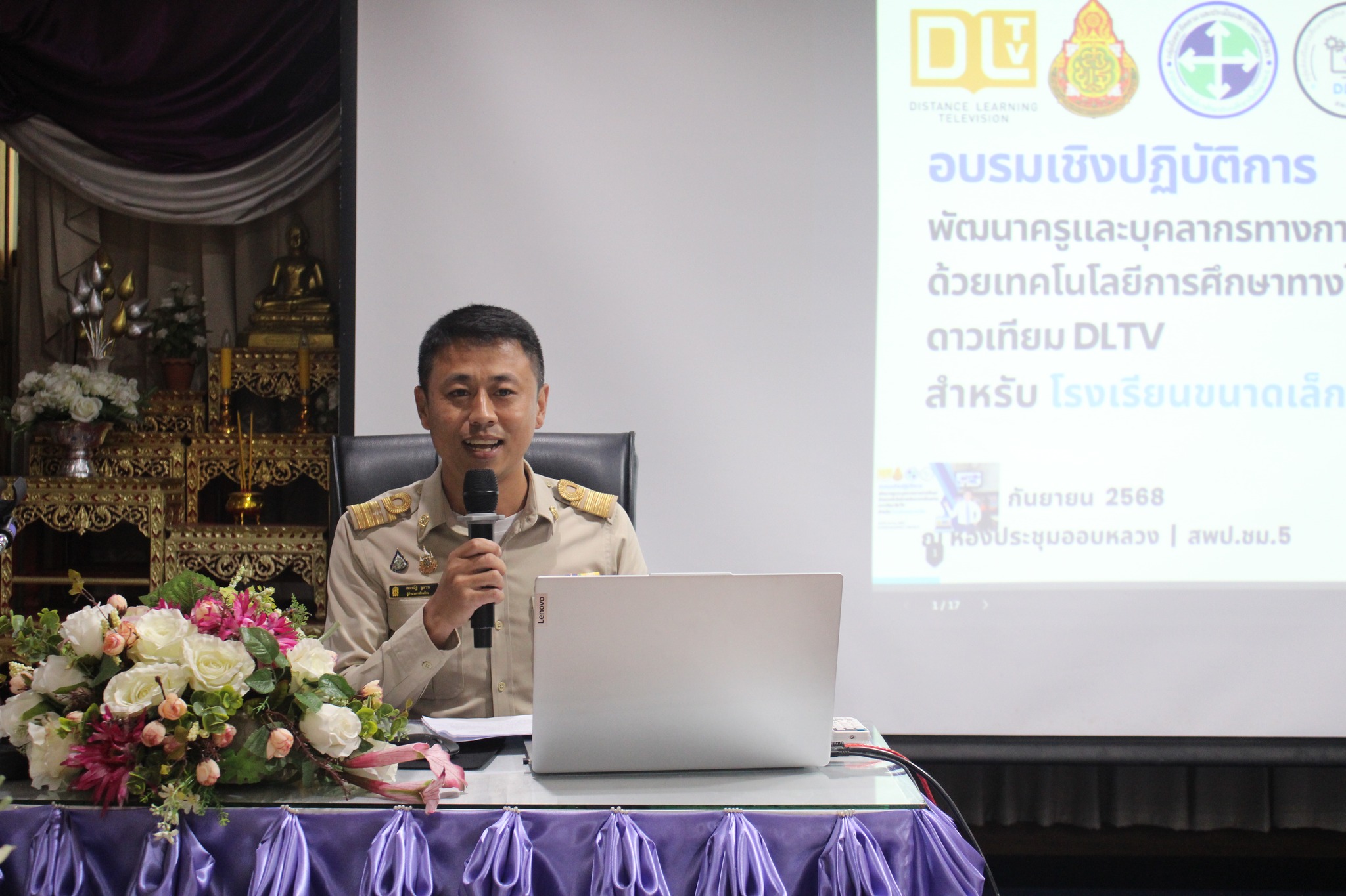 วันที่ 15 กันยายน 2568 นายประจักษ์ สระแก้ว ผู้อำนวยการสำนักงานเขตพื้นที่การศึกษาประถมศึกษาเชียงใหม่ เขต 5 มอบหมายให้ นางสาววชิราพร สุวรรณศรวล ผู้อำนวยการกลุ่มนิเทศติดตาม และประเมินผลการจัดการศึกษา เป็นประธานในพิธีเปิด การอบรมเชิงปฏิบัติการพัฒนาครูและบุคลากรทางการศึกษาด้วยเทคโนโลยีการศึกษาทางไกลผ่านดาวเทียม DLTV สำหรับโรงเรียนขนาดเล็ก จัดโดย กลุ่มส่งเสริมการศึกษาทางไกล เทคโนโลยีสารสนเทศและการสื่อสาร ร่วมกับ กลุ่มนิเทศติดตาม และประเมินผลการจัดการศึกษา มีนายวีรพงษ์ คำผง ศึกษานิเทศก์ชำนาญการพิเศษ ปฏิบัติหน้าที่ผู้อำนวยการ กลุ่มส่งเสริมการศึกษาทางไกลเทคโนโลยีสารสนเทศและการสื่อสาร และนายปิยะ อินต๊ะคำ ศึกษานิเทศก์ชำนาญการพิเศษ เป็นผู้ดูแลโครงการ โดยมีวัตถุประสงค์เพื่อเสริมสร้างความรู้ ความเข้าใจ และทักษะที่จำเป็นแก่ผู้บริหารสถานและครูผู้สอนโรงเรียนขนาดเล็ก ให้สามารถใช้สื่อการเรียนการสอน DLTV ได้อย่างมีประสิทธิภาพ สามารถนำไปบูรณาการในการจัดการเรียนการสอนอย่างเหมาะสมสอดคล้องกับความต้องการของผู้เรียนและบริบทของสถานศึกษา และได้มีการนำเสนอของโรงเรียนบ้านวังกอง ซึ่งเป็นโรงเรียนต้นแบบในการจัดการเรียนการสอน DLTV พร้อมกับการฝึกปฏิบัติการใช้งานและประกอบการติดตั้งจานดาวเทียมเบื้องต้น โดยมีผู้บริหารสถานศึกษาและคุณครูผู้รับผิดชอบโครงการ DLTV โรงเรียนขนาดเล็ก ในสังกัด สพป.เชียงใหม่ เขต 5 เข้าร่วมอบรมเชิงปฏิบัติการ ฯ ในครั้งนี้ ณ ห้องประชุมออบหลวง สพป.เชียงใหม เขต 5