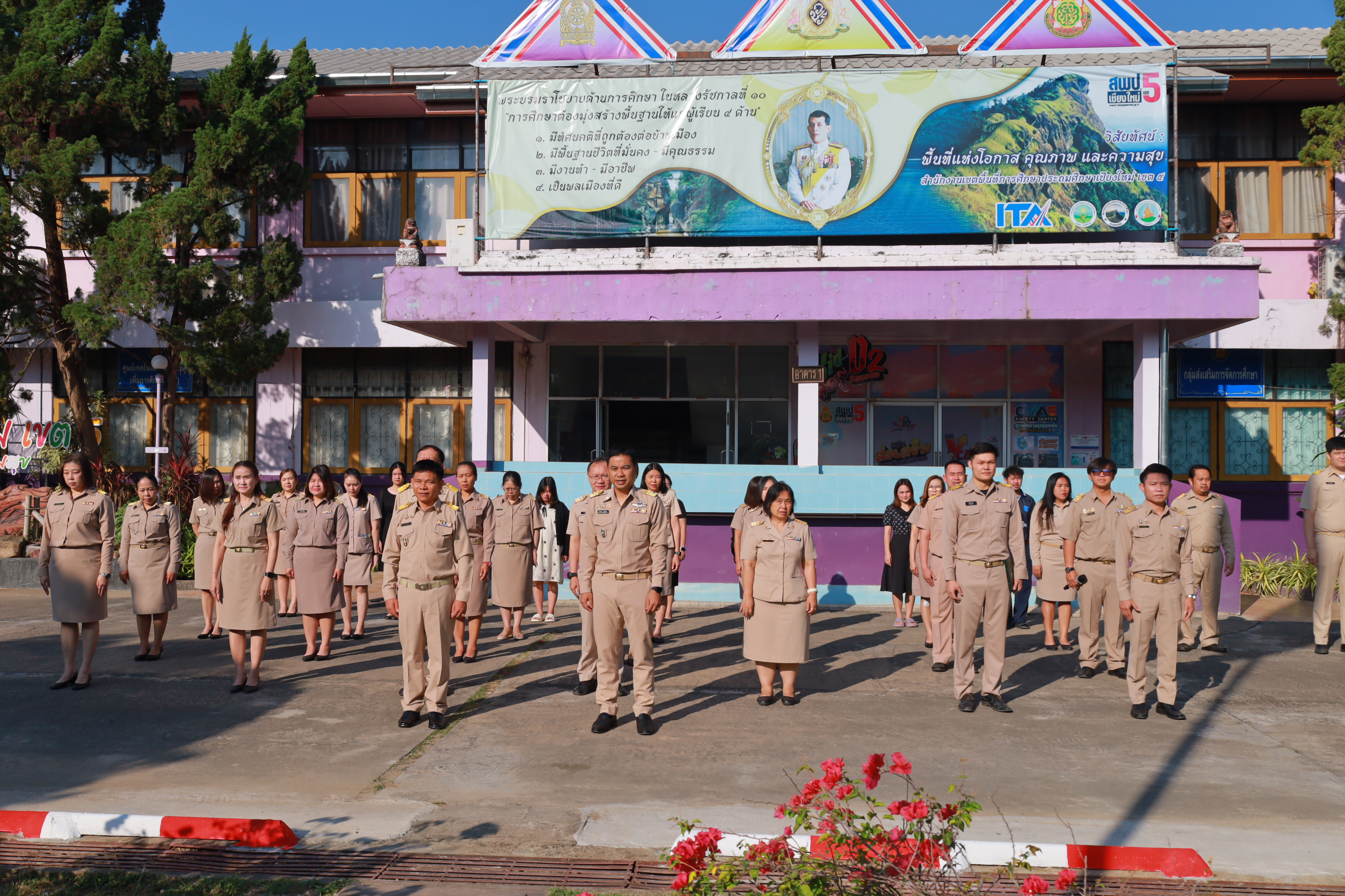 วันที่ 2 มีนาคม 2569 สำนักงานเขตพื้นที่การศึกษาประถมศึกษาเชียงใหม่ เขต 5 นำโดย นายกิตติพงษ์ โปร่งเจริญ ผู้อำนวยการสำนักงานเขตพื้นที่การศึกษาประถมศึกษาเชียงใหม่ เขต 5 นำบุคลากรในสังกัดสำนักงานเขต ฯ ดำเนินกิจกรรมเคารพธงชาติ ประจำเดือน มีนาคม 2569 พร้อมทั้งสวดมนต์ไหว้พระ และร่วมยืนถวายความอาลัยแด่สมเด็จพระนางเจ้าสิริกิติ์ พระบรมราชินีนาถ พระบนมราชชนนีพันปีหลวง เป็นเวลา 93 วินาที จากนั้นได้พบปะพูดคุย และมอบนโยบายการปฏิบัติงานให้แก่บุคลากรในสังกัด ณ บริเวณหน้าเสาธง สพป.เชียงใหม่ เขต 5