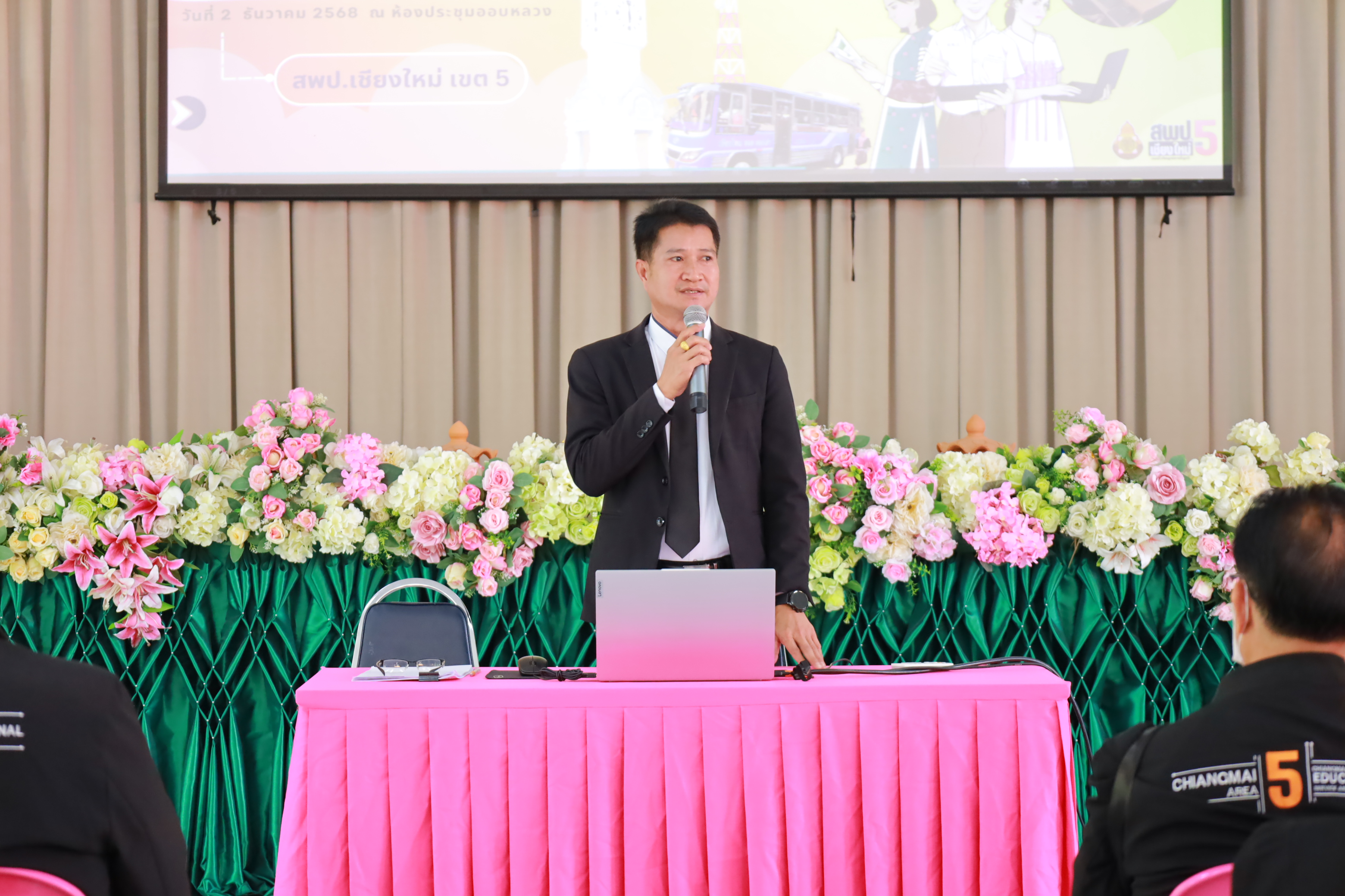 วันที่ 4 ธันวาคม 2568 นายประจักษ์ สระแก้ว ผู้อำนวยการสำนักงานเขตพื้นที่การศึกษาประถมศึกษาเชียงใหม่ เขต 5 เป็นประธาน พร้อมด้วย นายศักดิ์ชาย ไร่ขาม รองผู้อำนวยการสำนักงานเขตพื้นที่การศึกษาประถมศึกษาเชียงใหม่ เขต 5 ดร.วชิราพร สุวรรณศรวล ผู้อำนวยการกลุ่มนิเทศติดตาม และประเมินผลการจัดการศึกษา ผู้อำนวยการสถานศึกษา ศึกษานิเทศก์ คณะครู และบุคลากรทางการศึกษาในสังกัด ร่วมการประชุมคณะกรรมการตัดสินการแข่งขันงานศิลปหัตถกรรมนักเรียน ครั้งที่ 73 ปีการศึกษา 2568 ระดับเขตพื้นที่การศึกษา ที่จะจัดขึ้นในวันที่ 23-24 ธันวาคม 2568 เพื่อรับทราบปฏิทินการดำเนินงานการแข่งขัน กิจกรรม หลักเกณฑ์ และสถานที่จัดกิจกรรมต่าง ๆ พร้อมทั้งแยกกลุ่มตามสาระการแข่งขัน เพื่อพิจารณาเกณฑ์การให้คะแนนการตัดสินกิจกรรมต่าง ๆ ณ หอประชุมโรงเรียนชุมชนบ้านท่าข้าม อำเภอฮอด จังหวัดเชียงใหม่