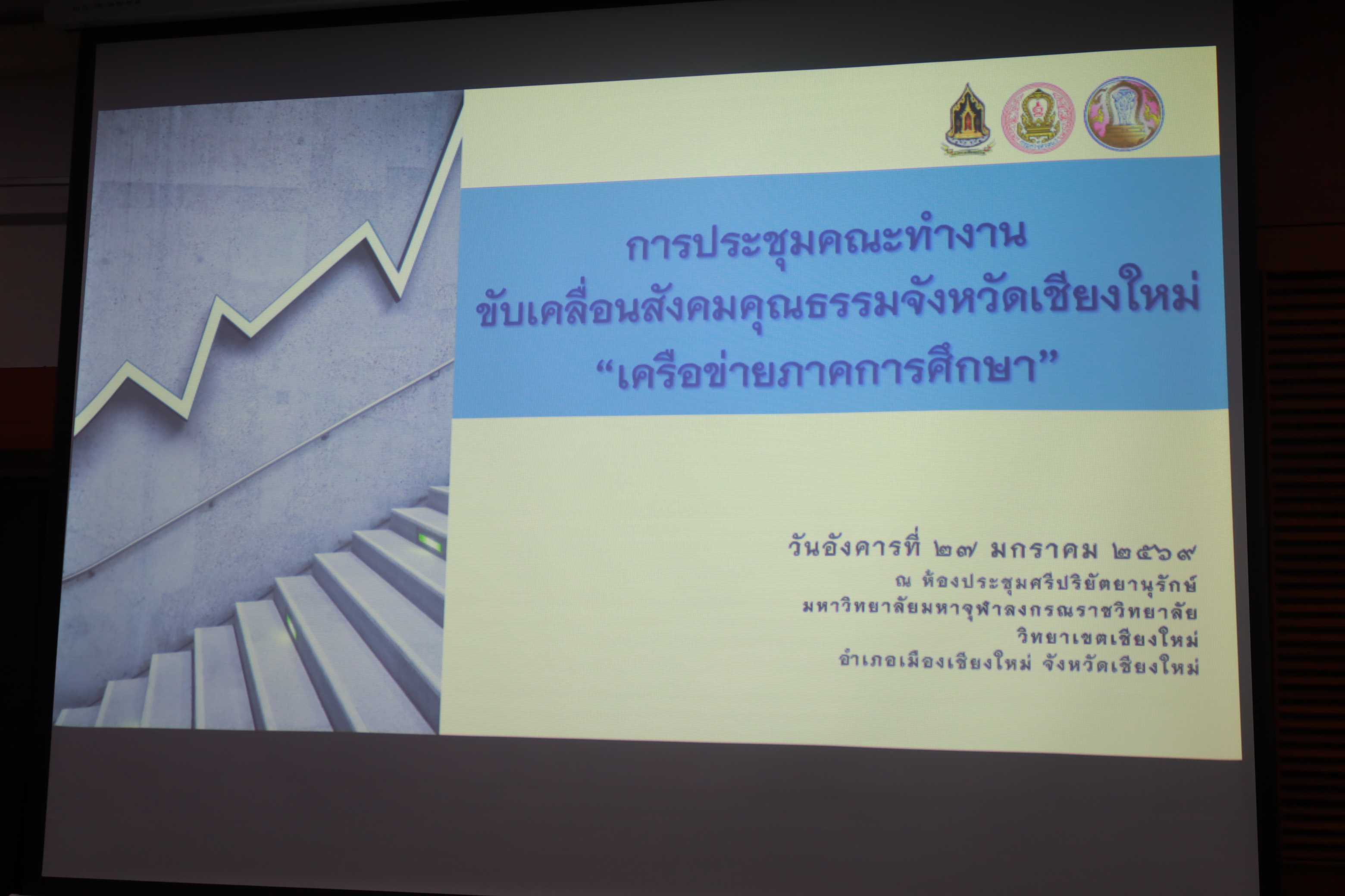 วันที่ 27 มกราคม 2569 นายกิตติพงษ์ โปร่งเจริญ ผู้อำนวยการสำนักงานเขตพื้นที่การศึกษาประถมศึกษาเชียงใหม่ เขต 5 มอบหมายให้ นางสาวอรัญญา สารีโพธิ์ รองผู้อำนวยการสำนักงานเขตพื้นที่การศึกษาประถมศึกษาเชียงใหม่ เขต 5 เข้าร่วมการประชุมคณะทำงานขับเคลื่อนสังคมคุณธรรมจังหวัดเชียงใหม่ เครือข่ายภาคการศึกษา เพื่อขับเคลื่อนการส่งเสริมคุณธรรมจังหวัดเชียงใหม่ ในภาคส่วนของภาคีการศึกษา และหารือแนวทางการปฏิบัติให้บรรลุตามวัตถุประสงค์ สู่เป้าหมายการเป็นสังคมคุณธรรมในอนาคต โดยมี นางกรวรรณ สุ่มมาตย์ วัฒนธรรมจังหวัดเชียงใหม่ เป็นประธานในการประชุม มีผู้แทนจากภาคการศึกษาในจังหวัดเชียงใหม่เข้าร่วม ณ ห้องประชุมศรีปริยัตยานุรักษ์ มหาวิทยาลัยมหาจุฬาลงกรณราชวิทยาลัย วิทยาเขตเชียงใหม่ อำเภอเมืองเชียงใหม่ จังหวัดเชียงใหม่