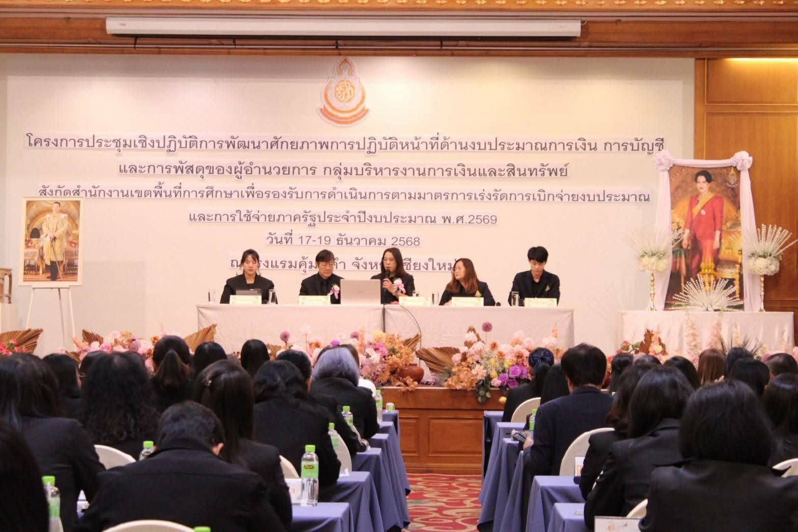 วันที่ 17 ธันวาคม 2568 นายประจักษ์ สระแก้ว ผู้อำนวยการสำนักงานเขตพื้นที่การศึกษาประถมศึกษาเชียงใหม่ เขต 5 มอบหมายให้ นายพงศ์ธร จิตรแม้น รองผู้อำนวยการสำนักงานเขตพื้นที่การศึกษาประถมศึกษาเชียงใหม่ เขต 5 และนางอริศรา กังแฮ ผู้อำนวยการกลุ่มบริหารงานการเงินและสินทรัพย์ เข้าร่วมเป็นเกียรติในพิธีเปิด พร้อมทั้งร่วมการประชุมในโครงการประชุมเชิงปฏิบัติการพัฒนาศักยภาพการปฏิบัติหน้าที่ด้านงบประมาณ การเงิน การบัญชี และการพัสดุ ของผู้อำนวยการกลุ่มบริหารงานการเงินและสินทรัพย์ สังกัดสำนักงานเขตพื้นที่การศึกษา เพื่อรองรับการดำเนินการตามมาตรการเร่งรัดการเบิกจ่ายงประมาณ และการใช้จ่ายภาครัฐ ประจำปีงบประมาณ พ.ศ.2569 ระหว่างวันที่ 17-19 ธันวาคม 2568 ณ โรงแรมคุ้มภูคำ จังหวัดเชียงใหม่ และโรงเรียนในพื้นที่ จังหวัดเชียงใหม่ . ตามที่พระราชบัญญัติงบประมาณรายจ่ายประจำปีงประมาณ พ.ศ. 2569 มีผลบังคับใช้ ตั้งแต่วันที่ 1 ตุลาคม 2568 และคณะรัฐมนตรีได้มีมติเมื่อวันที่ 21 ตุลาคม 2568 เห็นชอบมาตรการเร่งรัด การเบิกจ่ายงบประมาณและการใช้จ่ายภาครัฐ ประจำปีงบประมาณ พ.ศ.2569 เพื่อให้เม็ดเงินจากงบประมาณรายจ่ายประจำปีลงสู่ระบบเศรษฐกิจอย่างต่อเนื่องและรวดเร็ว และหน่วยงานของรัฐใช้เป็นแนวทางในการเร่งรัดการเบิกจ่ายเงินกันไว้เบิกเหลื่อมปี และเงินงบประมาณ ครอบคลุมทั้งเงินงบประมาณและเงินนอกงบประมาณ ให้สอดคล้องกับเป้าหมายในภาพรวมของประเทศ เพื่อให้การเร่งรัดการเบิกจ่ายเงินงบประมาณเกิดความคล่องตัว รวดเร็ว มีประสิทธิภาพ เป็นไปตามเป้าหมายที่กำหนดไว้ และสอดคล้องกับนโยบายเร่งรัดการกระตุ้นเศรษฐกิจ จึงได้มีแนวทางการดำเนินการใช้จ่ายเงินงบประมาณและการใช้จ่ายภาครัฐ ประจำปีงบประมาณ พ.ศ.2569 รวมถึงแนวทางการตรวจรับพัสดุ เพื่อให้สามารถเบิกจ่ายเงินให้กับคู่สัญญาได้อย่างรวดเร็ว และการดำเนินการ เป็นไปตามกฎหมายและระเบียบที่เกี่ยวข้อง เพื่อให้ทุกส่วนราชการถือปฏิบัติ