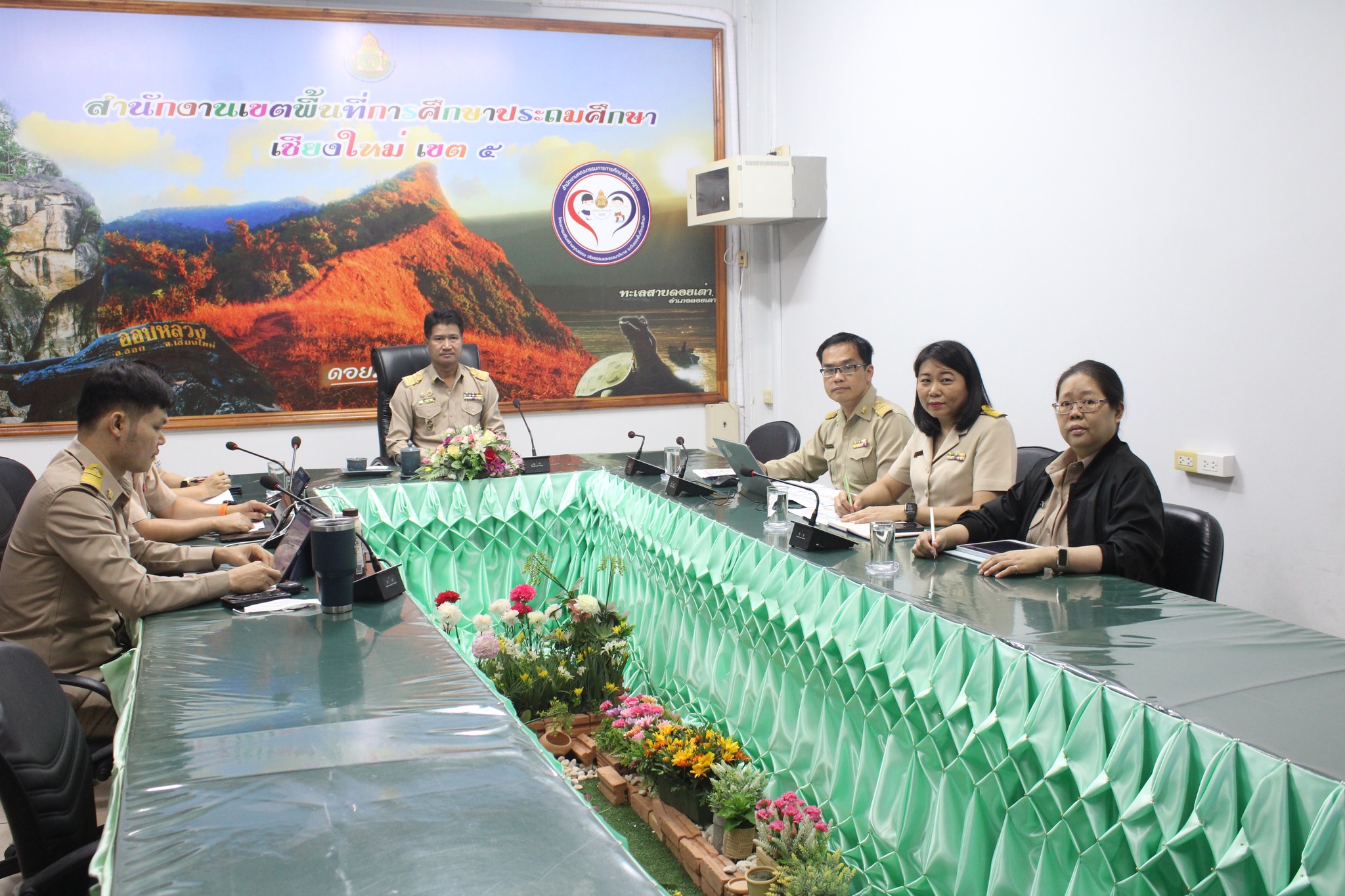 วันที่ 23 กุมภาพันธ์ 2569 นายกิตติพงษ์ โปร่งเจริญ ผู้อำนวยการสำนักงานเขตพื้นที่การศึกษาประถมศึกษาเชียงใหม่ เขต 5 มอบหมายให้ นายศักดิ์ชาย ไร่ขาม รองผู้อำนวยการสำนักงานเขตพื้นที่การศึกษาประถมศึกษาเชียงใหม่ เขต 5 พร้อมด้วย นางสาววชิราพร สุวรรณศรวล ผู้อำนวยการกลุ่มนิเทศติดตาม และประเมินผลการจัดการศึกษา และศึกษานิเทศก์ในสังกัด ร่วมประชุมและรายงานสรุปผล การขับเคลื่อนการนิเทศการศึกษาขั้นพื้นฐานตามนโยบาย "เรียนดี มีคุณธรรม" ปีงบประมาณ พ.ศ. 2569 โดย นายอุดมพร กันทะใจ ผู้อำนวยการสำนักงานเขตพื้นที่การศึกษาประถมศึกษาเชียงใหม่เขต 2 เป็นประธานเปิดในประชุมและรายงานสรุปผลฯครั้งนี้ โดยร่วมประชุมผ่านระบบออนไลน์ Zoom Meeting ณ ห้องประชุมสวนสน สพป.เชียงใหม่ เขต 5
