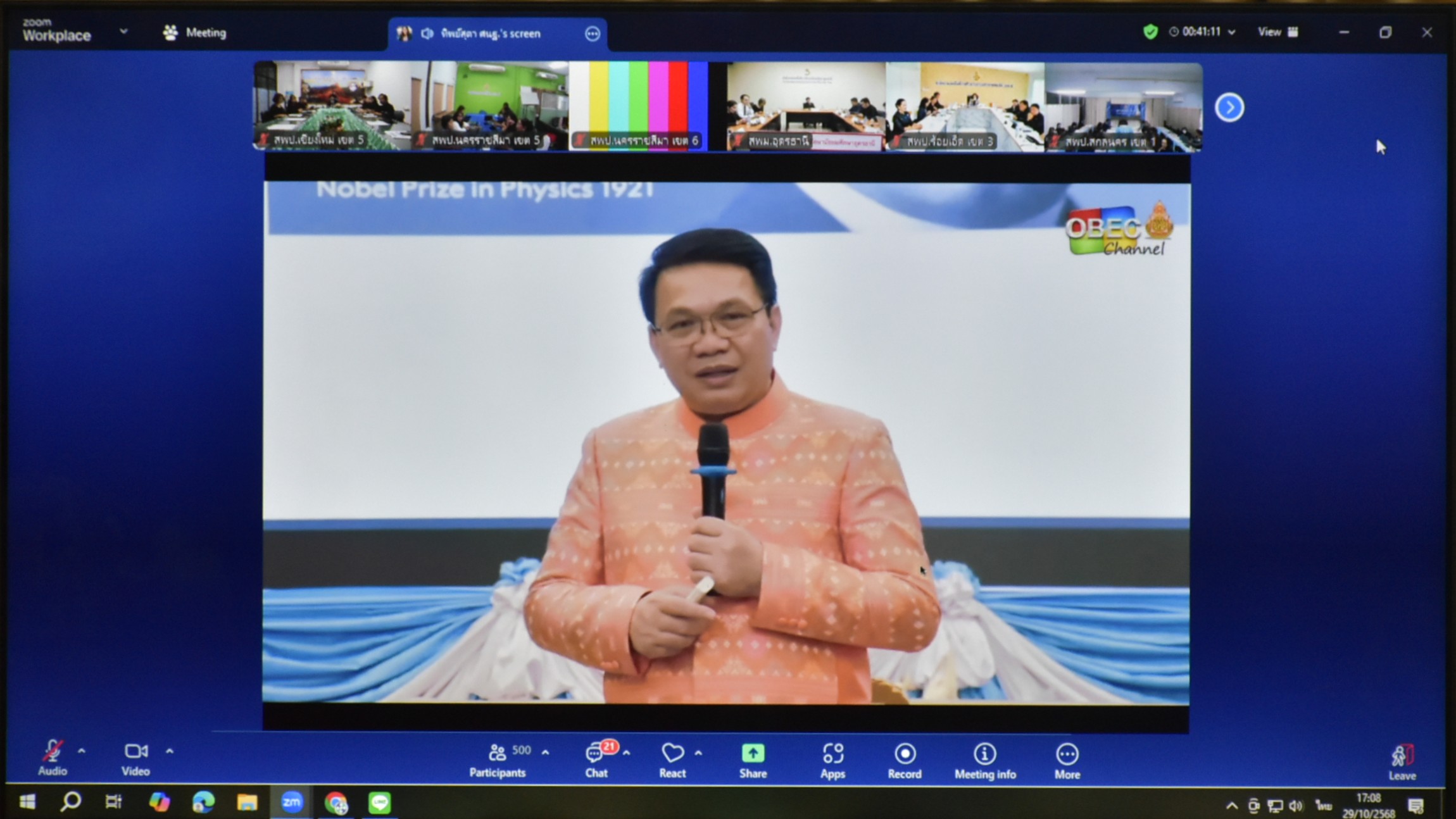 วันที่ 30 ตุลาคม 2568 นายประจักษ์ สระแก้ว ผู้อำนวยการสำนักงานเขตพื้นที่การศึกษาประถมศึกษาเชียงใหม่ เขต 5 มอบหมายให้ นายศักดิ์ชาย ไร่ขาม รองผู้อำนวยการสำนักงานเขตพื้นที่การศึกษาประถมศึกษาเชียงใหม่ เขต 5 พร้อมด้วย ศึกษานิเทศก์ ในสังกัดกลุ่มนิเทศติดตาม และประเมินผลกาจัดการศึกษา นำโดย ดร.วชิราพร สุวรรณศรวล ผู้อำนวยการกลุ่มนิเทศติดตาม และประเมินผลกาจัดการศึกษา ร่วมการประชุมออนไลน์ Kick Off Meeting : มิติใหม่การนิเทศการศึกษาสู่การพัฒนาคุณภาพผู้เรียนอย่างยั่งยืนตามนโยบาย "เรียนดี มีคุณธรรม" ปีงบประมาณ พ.ศ.2569 โดยมี ดร.พิเชฐ โพธิ์ภักดี เลขาธิการคณะกรรมการการศึกษาขั้นพื้นฐาน เป็นผู้เปิดการประชุมออนไลน์ พร้อมทั้งมอบนโยบายและจุดเน้นของสำนักงานคณะกรรมการการศึกษาขั้นพื้นฐาน ร่วมประชุมออนไลน์ ผ่านระบบ Video Conference ณ ห้องประชุมสวนสน สพป.เชียงใหม่ เขต 5