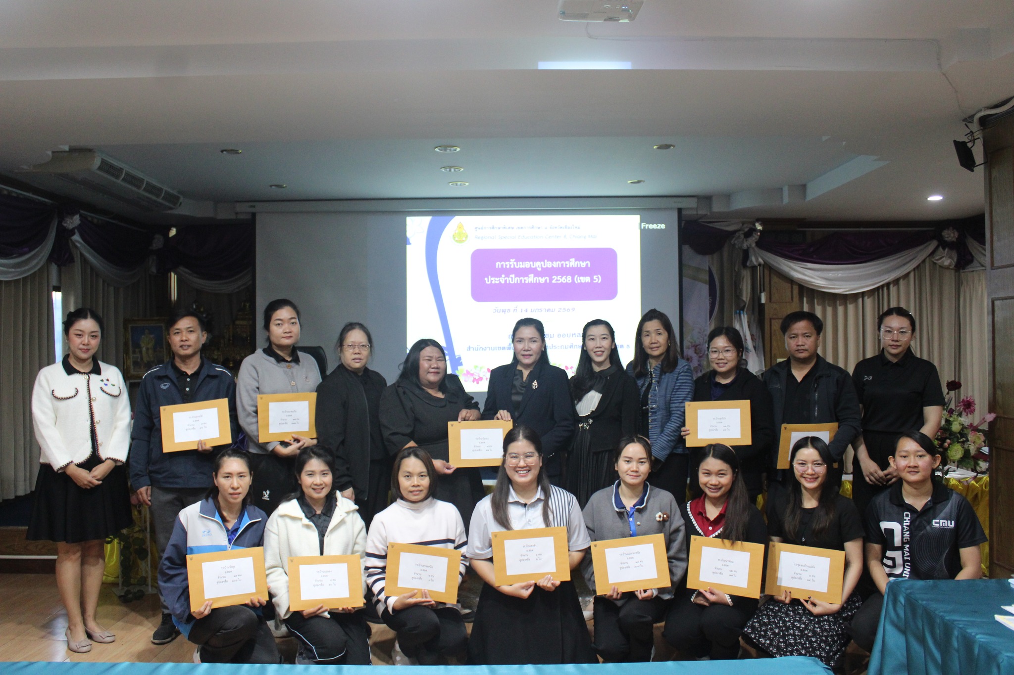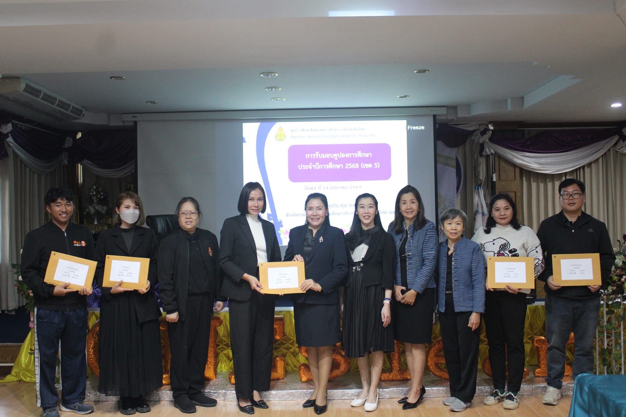 วันที่ 14 มกราคม 2569 เวลา 10.00 น. นายกิตติพงษ์ โปร่งเจริญ ผู้อำนวยการสำนักงานเขตพื้นที่การศึกษาประถมศึกษาเชียงใหม่ เขต 5 มอบหมายให้ นางสาวอรัญญา สารีโพธิ์ เป็นประธาน การมอบคูปองเพื่อการศึกษา ประจำปีการศึกษา 2568 พร้อมด้วย นางสาวทิวา อินทรศักดิ์ ศึกษานิเทศก์ชำนาญการ ผู้บริหารสถานศึกษา คณะครูโรงเรียนที่ได้รับการจัดสรร เข้าร่วมพิธีมอบฯ โดยได้รับเกียรติจาก นางสาวกฤติกา ประสาธน์สุวรรณ์ รองผู้อำนวยการศูนย์การศึกษาพิเศษ เขตการศึกษา 8 จังหวัดเชียงใหม่ ได้กล่าวถึงวัตถุประสงค์ของการดำเนินการจัดสรรคูปองเพื่อการศึกษา (สิ่งอำนวยความสะดวก สื่อ บริการ และความช่วยเหลืออื่นทางการศึกษา) ให้แก่นักเรียนที่ได้ยื่นขอตามแผนการจัดการศึกษาเฉพาะบุคคล (IEP) ในสังกัดสำนักงานเขตพื้นที่การศึกษาประถมศึกษาเชียงใหม่ เขต 5 เพื่อสนับสนุนสิทธิประโยชน์ทางการศึกษา และจัดสรรสื่อการเรียนการสอนที่เหมาะสมให้กับนักเรียนที่มีความต้องการจำเป็นพิเศษ และให้เข้าถึงการศึกษาได้อย่างมีประสิทธิภาพ ณ ห้องประชุมออบหลวง สำนักงานเขตพื้นที่การศึกษาประถมศึกษาเชียงใหม่ เขต 5